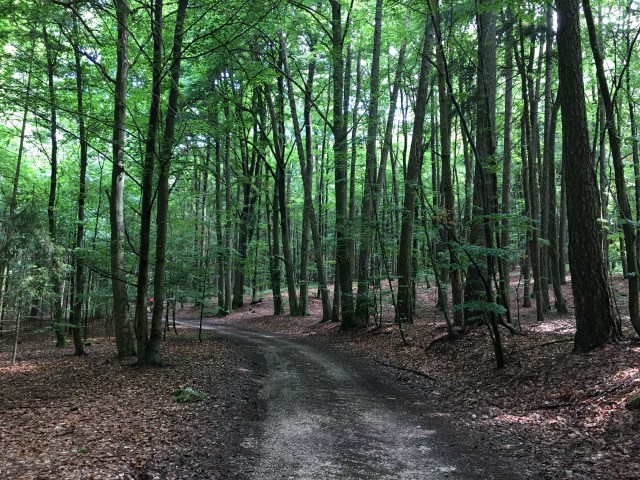 Cycling on from there – this was the forest on that hill in the elevation graphic above. The forest is innocent enough looking in this photograph but that innocence didn’t last!