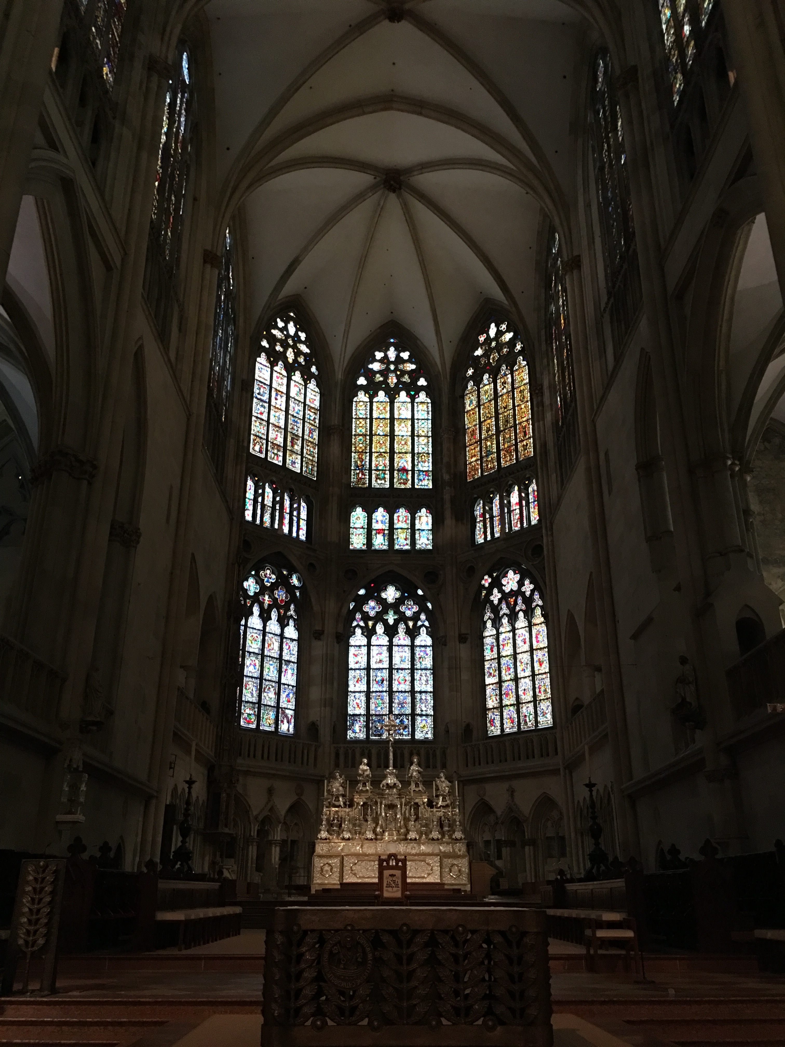 Then it was straight to the Cathedral. Quoting my guide book Regensburg’s St Peter’s Cathedral is a unique example of French Gothic in Southern Germany. Its construction began in around 1274 and is one of the most significant churches both in Bavaria and beyond.